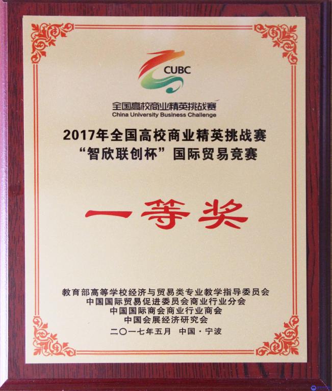 2017年全国高校商业精英挑战赛“智欣联创杯”国际贸易竞赛一等奖