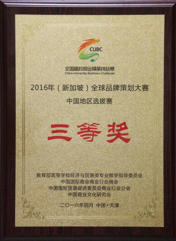 2016年(新加坡)全球品牌策划大赛 中国地区选拔赛 三等奖