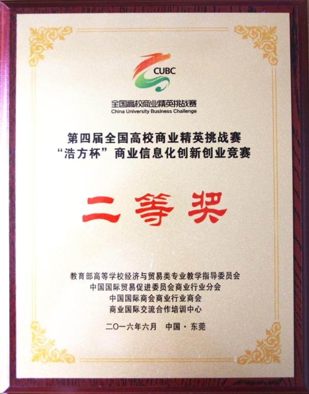 2016年第四届全国高校商业精英挑战赛浩方杯商业信息化创新创业竞赛二等奖