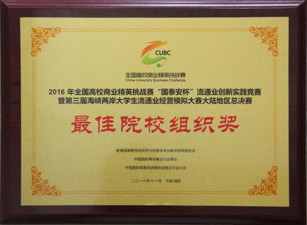 2016年全国高校商业精英挑战赛“国泰安杯”流通业创新实践竞赛最佳院校组织奖
