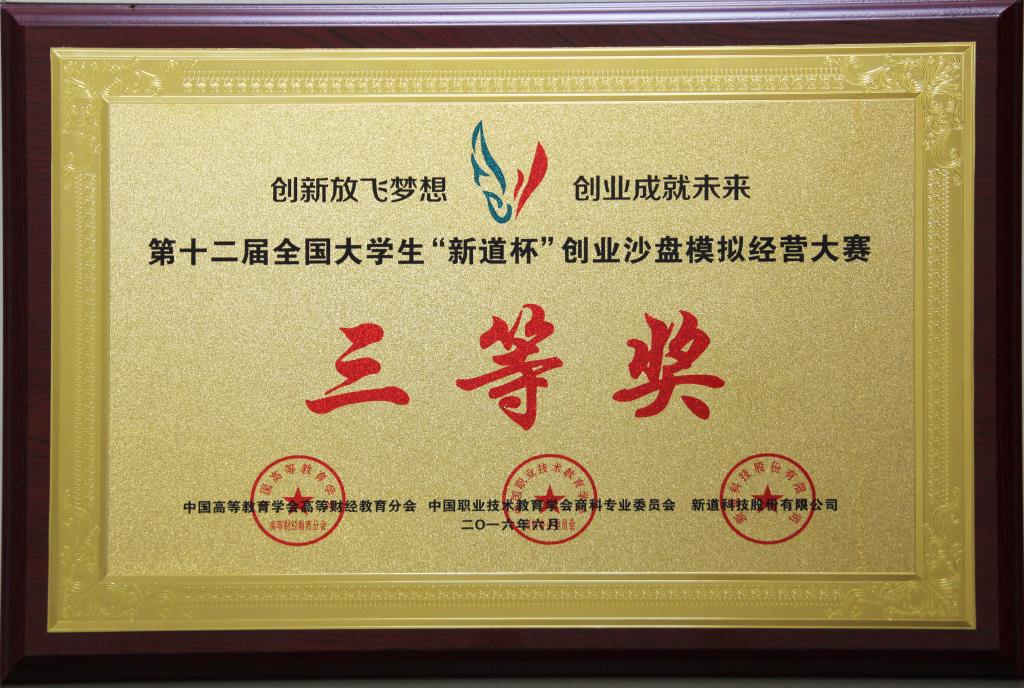 2016年第十二届全国大学生“新道杯”创业沙盘模拟经营大赛三等奖