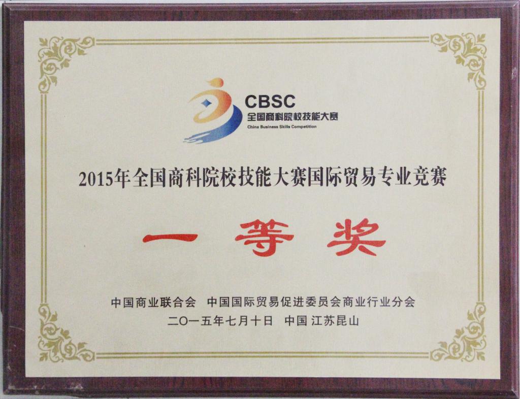 2015年全国商科院校技能大赛国际贸易专业竞赛 一等奖