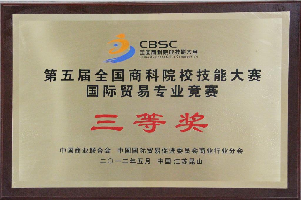 2012年第五届全国商科院校技能大赛国际贸易专业竞赛 三等奖