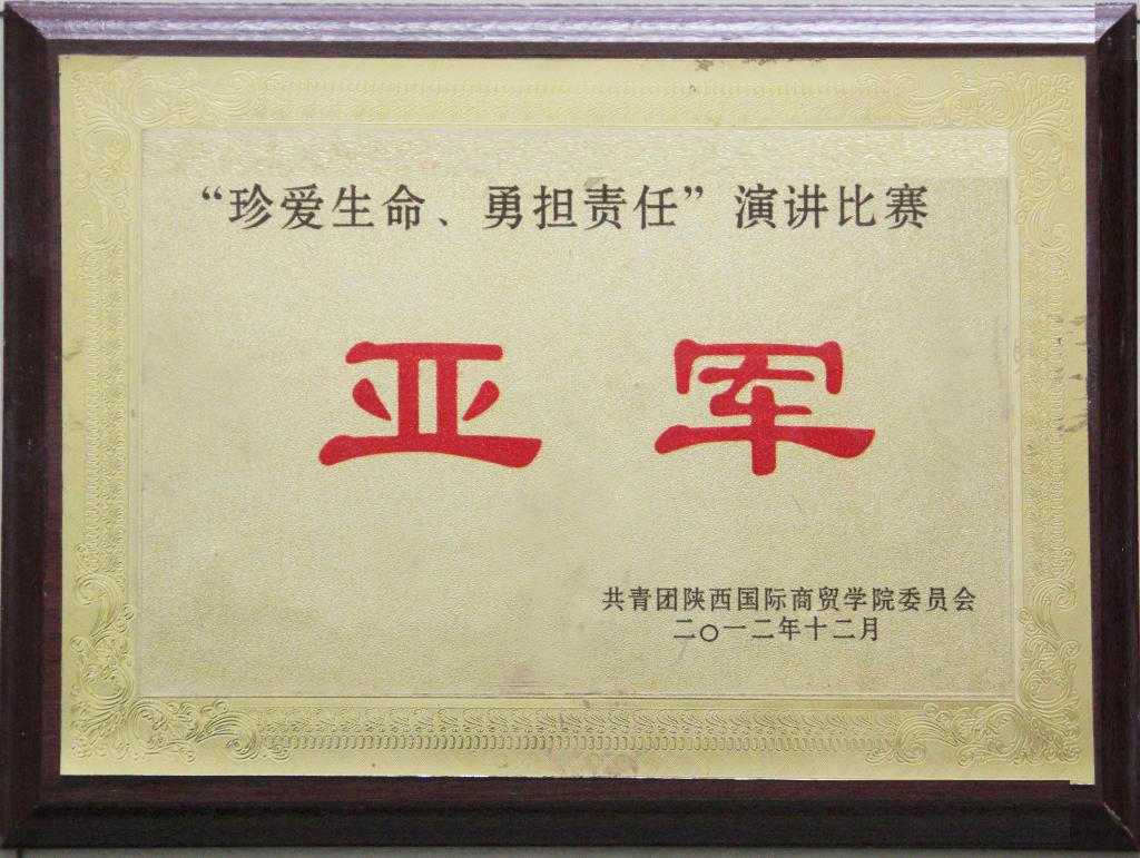 2012年“珍爱生命、勇担责任”演讲比赛 亚军