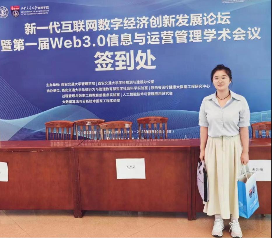 2023年9月9日-10日,为进一步促进我院大数据管理与应用专业建设与人才培养水平,国际经济学院大数据应用教研室专职教师柯丹丹老师应邀参加在西安交通大学太阳成集团tyc33455cc官网举办的新一代互联网数字经济创新发展论坛暨第一届Web3.0信息与运营管理学术会议。