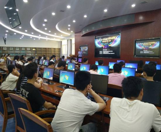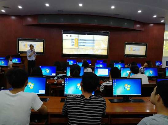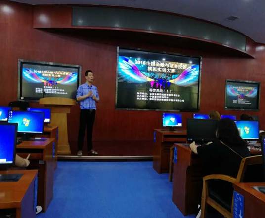 2018年5月2日下午16:00,国际经济学院金融系在经济管理实验中心举办了以学科竞赛《梦想起航  等你来战》为主题的2018全国金融与证券投资模拟实训大赛宣讲及培训会,院长助理冯明、辅导员常伟、金融系全体教师以及50名参赛学生参加了会议。会议由系主任张丽主持。