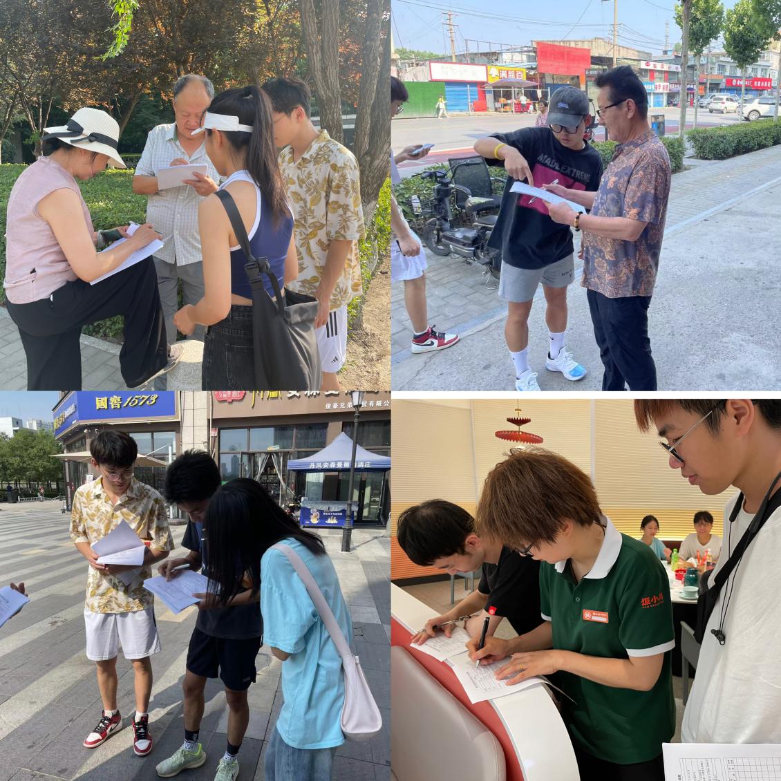 第一小分队由彭福,熊磊,游婵婧,王添奇,龙耐龙,庞永基六位同学组成。2023年6月27日8点30分至10点30分,他们在西安市各小区附近发放了问卷,一共发了200份纸质版问卷。同学们说:“社会调查让我深入了解人们的需求和挑战,拓宽了我们的视野。通过与不同群体的交流,我们体会到了社会多样性和共同关切。这次调查让我们认识到人们的声音和经验的重要性,激励我们为社会进步贡献力量。”