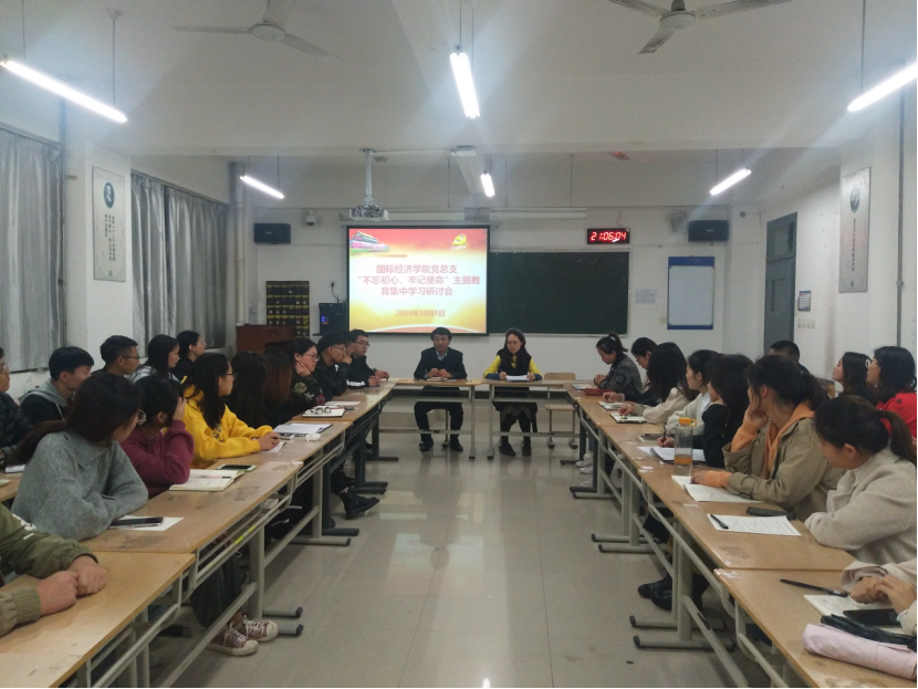 2019年10月21日晚20:00,国际经济学院党总支组织师生党员在2J320多媒体教室集中收看了由中央组织部和中央广播电视总台联合录制的“不忘初心、牢记使命”主题教育专题节目《榜样4》首播。