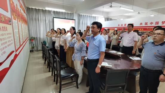 活动伊始,在学院党总支副书记张孝峰的领誓下,全体党员面向党旗,举起右手,庄严神圣地宣誓。“我志愿加入中国共产党,拥护党的纲领,遵守党的章程,履行党员义务……..”铿锵的誓词激荡着每个党员的思想灵魂,表达着学院新老党员对党的忠诚和为共产主义事业奋斗终身的决心,激励着学院的党员同志们不断进取,奋斗终身。组织新党员开展入党宣誓,组织老党员重温入党誓词,目的是让新党员通过入党宣誓仪式,感受入党的庄重性和严肃性,坚定为共产主义事业奋斗终身的信心和决心,让老党员重温入党誓词时的庄严承诺和坚定决心,在党旗下接受心灵的净化和洗礼,牢记共产党员的政治责任和历史使命,永葆共产党员的政治本色。