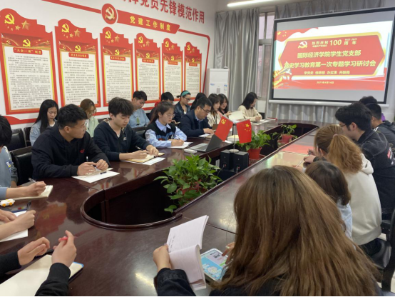 为深入贯彻落实校党委、学院党总支有关党史学习教育实施方案部署,4月14日下午,国际经济学院学生第一、二支部联合召开党史学习教育第一次专题研讨会,学生支部党员及预备党员参加了会议及学习研讨,学生第一支部书记荣超主持会议。