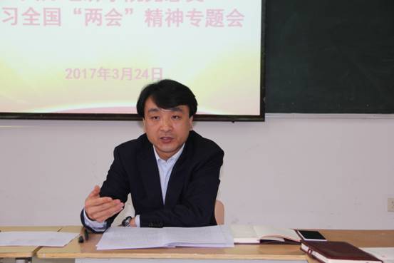 随后,学院党总支副书记张孝峰做了学习总结讲话。他指出,2017年全国两会,是在决胜全面建成小康社会关键时期召开的一次重要会议,对全面贯彻党的十八大和十八届三中、四中、五中、六中全会精神,深入贯彻习近平总书记治国理政新理念新思想新战略,进一步把全党全国各族人民认识和行动统一到党中央决策部署上来,凝心聚力、团结奋斗,完成今年改革发展稳定各项任务,夺取全面建成小康社会新胜利,以优异成绩迎接党的十九大胜利召开,具有十分重要的意义。