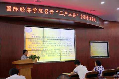 2015827下午,国际经济学院在经济管理实验教学示范中心召开“三严三实”专题教育学习会议,学院领导班子成员、全体教职员工参加了会议,会议由党总支副书记张孝峰主持。