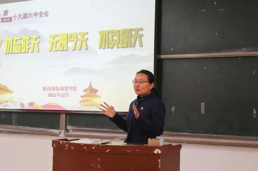 为深入学习宣传贯彻党的十九届六中全会精神,把广大师生的思想和行动统一到全会精神上来。12月15日15点,国际经济学院党总支邀请马克思主义学院教研室主任展海燕副教授为我院师生作了党的十九届六中全会精神解读专题宣讲。参加会议的有国际经济学院师生党员、团学骨干、学生代表等一百余人聆听讲座,会议由学院党总支副书记路敏主持。