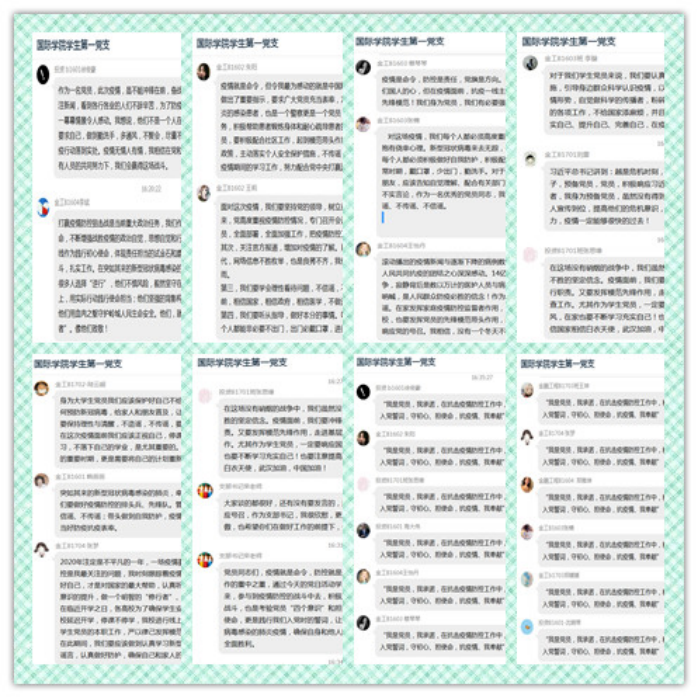 随后,大家围绕会议主题和学习内容,发表了自己的感想,并纷纷表示:在做好自身疫情防控同时,带动周围同学落实地方政府和学院各项防控要求,主动参与防控疫情第一线,发挥党员先锋模范作用,始终让党旗在一线高高飘扬。同时,全体党员就《国际经济学院党总支致全体师生的倡议书》发表感想并发出党员承诺。