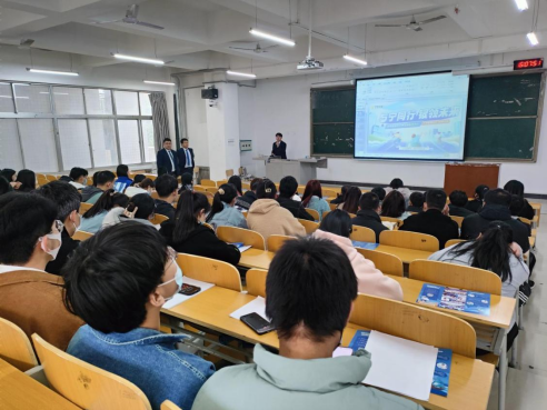 招聘会首先由22届毕业生党鑫鑫为大家分享了他去年入职以来到目前的工作感受,以及薪资待遇、企业的福利待遇等。随后,由宁波银行的王引向同学们对本次校园招聘岗位、薪资,报名方式和选拔形式等方面内容作了讲解,并详细介绍了宁波银行的普升机制,以帮助应聘同学们更好地选择投递方向和职业发展路径。在之后的互动环节,鲁江经理为同学们耐心解答求职过程中的困感,并为同学们介绍了许多学长学姐的案例。最后辅导员刘翔老师鼓励大家踊跃报名,把握住每一次校园宣讲会的机会,并预祝同学们都能收到心仪的offer。