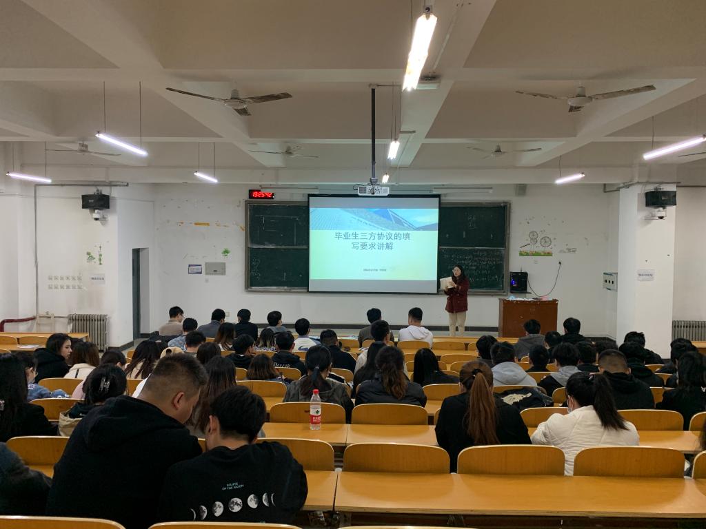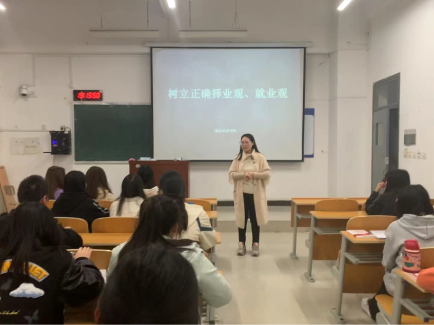 “温度”---就业主题教育有温度。关注学生思想,开展班级就业主题讲座及系列班会,讲解当前就业形势及重要性,帮助毕业生树立正确的择业观、积极的就业观;关注学生心理,召开毕业季心理健康主题班会,疏导毕业季焦虑情绪,缓解心理压力;关注学生求职技能,召开求职面试主题班会,指导毕业生完善简历,培训求职面试技巧。