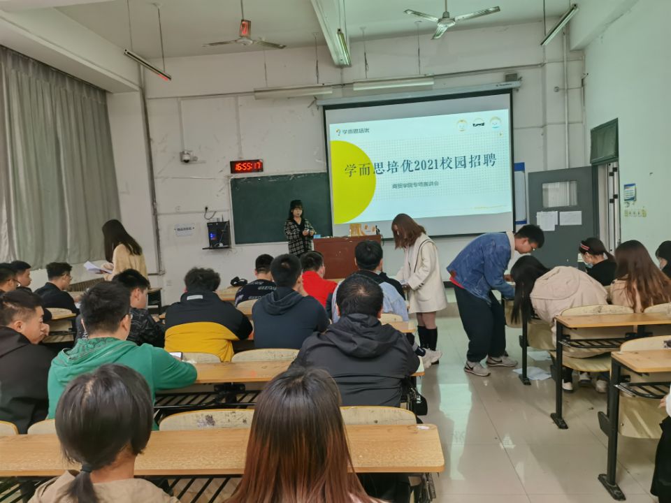 为切实做好2021届毕业生就业工作,缓解毕业生就业压力,大力构建毕业生与用人单位的交流。国际经济学院组织毕业生于2020年11月16日17:00在2J127召开专场招聘会。本次邀请了好未来——学而思培优进行现场宣讲招聘,2017级毕业生参会。