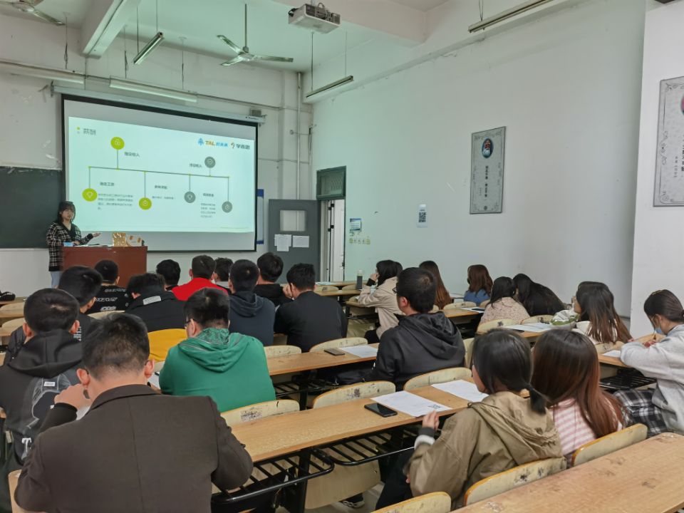 本次招聘会首先由公司负责人向在场同学放映公司视频宣传片,随后,以PPT的形式就公司的一些规章制度、福利待遇、企业文化、现有产业结构、组织结构、人力资源政策以及岗位需求等几个方面向同学们做了详细介绍。期间,公司负责人与同学们进行了现场交流和互动,同学们进行了踊跃提问,负责人一一作答,并鼓励同学们积极寻找工作,正视毕业现状,实现自我梦想。