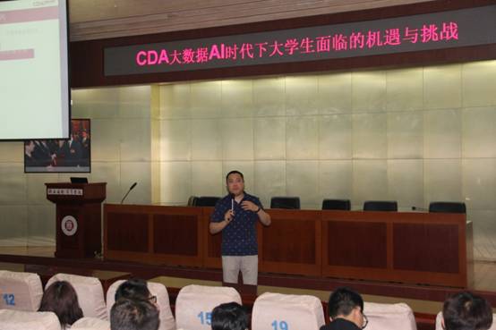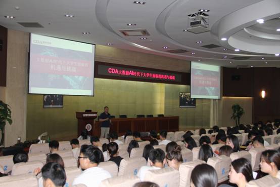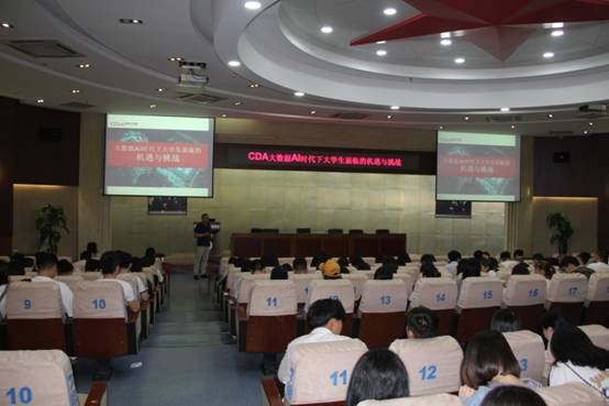 为了进一步拓宽学生就业思维,解决毕业生就业最后一公里的痛点,4月24日下午,国际经济学院邀请北京CAD数据分析学院西北地区总监黄健在学术报告厅做一场《CDA大数据AI时代下大学生面临的机遇与挑战》专题讲座,部分教师代表、辅导员代表以及全体大三学生代表300余人参加讲座。专题讲座由学院院长助理路敏副教授主持。