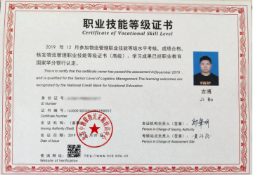 物流管理职业技能等级(高级)证书(中国物流与采购联合会),助理物流师(国家人力资源和社会保障部)。