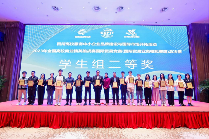 10月19日—10月23日,2023年第十三届全国高校商业精英挑战赛国际贸易竞赛总决赛在浙江宁波国际会展中心举行。国际经济学院选派出的三支参赛队凭借在赛场上的优异成绩,同来自全国26个省、自治区和直辖市的172所高等院校322支参赛队(其中本科组294支、高职高专组12支、研究生组6支)中脱颖而出,分别荣获全国总决赛本科组一等奖1项、二等奖1项、三等奖1项,同时学校荣获最佳院校组织奖。