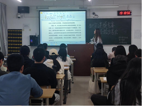 首先,王慧滢对全国大学生数学建模竞赛进行了简要介绍,并结合自己参赛经历及参赛作品讲解了论文的撰写以及参赛的注意事项。王慧滢提到,全国大学生数学建模比赛含金量非常高,获奖经历在日后的就业和考研方面会是很大的助力,即使没有获奖,参加过程中也能收获许多经验知识、还能锻炼个人的团队合作能力与领导能力,可以说是“参加一次,受益终身。”其次,王慧滢指出,参加前必要的知识储备是基础,并且向同学们介绍了几种建模的方法和参加竞赛必备的软件操作知识,明确指出团队合作是最为关键的,保持良好的比赛节奏,不急不躁,合理分工。最后,王慧滢结合自身参加的比赛经历,向同学们推荐了含金量较高的比赛,例如全国大学生英语竞赛、全国大学生数学竞赛、全国证卷模拟大赛、大学生创新创业大赛、沙盘模拟大赛等,鼓励同学们积极参加比赛,在竞赛中学习、在竞赛中提升。