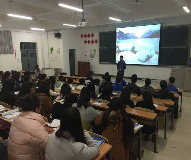 创新教学形式,提高教学实效。该课程任课教师吴静姗老师认为,阅历是书本上和课堂上学不到的知识,经验是珍贵的,分享经验是可贵的。在大学生活中,有了正确的导航和规划,才能全面的饱览人生中的旖旎风景。优化《大学生的职业生涯规划》课堂教学结构,实行中班教学、专题报告与小班辅导相结合的教学形式。课堂上邀请了13级国贸系赴美实习学生王妍、吴金科,给大一新生分享了赴美实习的经历,同时鼓励大家好好学习英语;还邀请了13级参加过阅兵式的退伍学生杨文科,给大一新生分享军营的“苦”,并激励大家珍惜大学生活,理性规划大学生职业生涯。中班教学突出主要知识点传授和基本原理解读,小班辅导针对理论难点,结合学生思想实际开展讨论。开发建设网络教学平台,加强师生线上与线下互动。探索课堂内外理论教学中互动模式教学实践新模式,课内采用案例讨论、演讲辩论等形式,开展多形式的考察和调查。