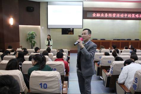 2016年3月21日下午,国际经济学院“企业大讲堂系列讲座2”报告会在学校南区学术报告厅举行,香港太子基金管理公司对冲基金经理蔡卓衡教授受邀作了主题为“金融业务经营活动中的策略选择”的学术报告。学院党总支副书记张孝峰、学工办主任荣超、全体辅导员以及国贸专业13级、14级全体学生参加了报告会。报告会由院长助理路敏主持。