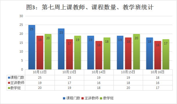 本周30名教师本周累计上课51门,累计上课节次311节次,总体运行情况见表2。