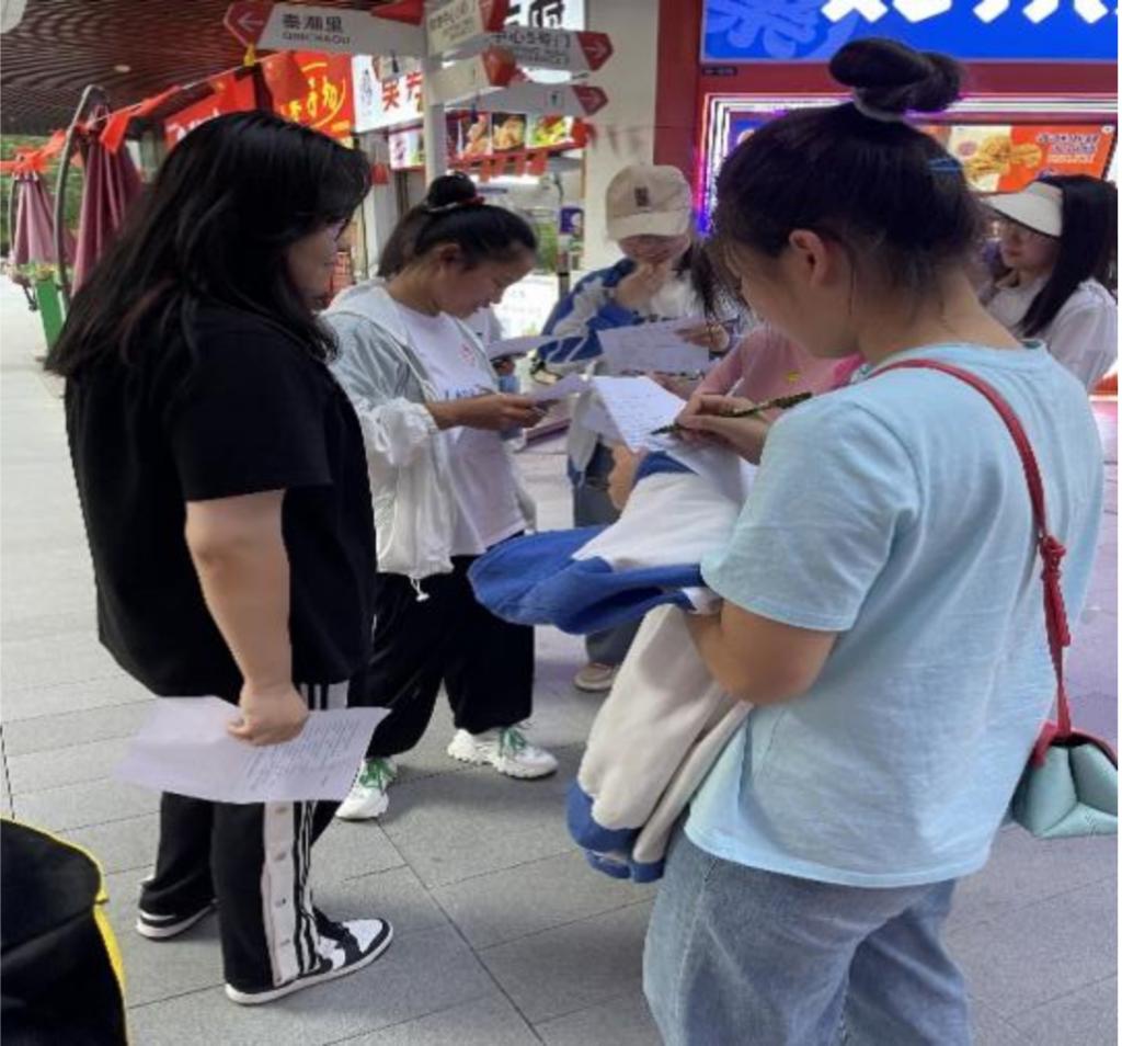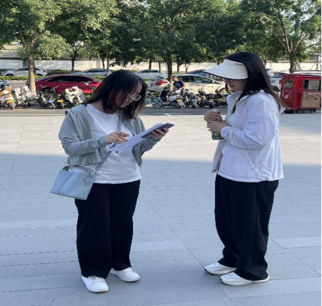2023年6月25日下午,贺倩老师带领三个小组进行调研。调研题目经过多次讨论与协商后,分别确定为陕西农民参与农村电商意愿的调查、沣西居民对网购满意度的调查分析、居民对网络购物维权意识的调查。调研过程中,学生们调查热情高涨,顶着高温在咸阳市、东张村及沣西新城,针对居民和游客进行近200份问卷的发放。