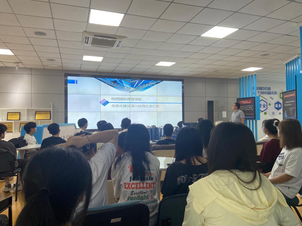 信息化中心杜主任及杨老师对大家的到来表示欢迎。杨老师介绍信息化中心各部门的工作内容,作为学校信息化中心的核心部门,致力于推动数字化转型和应用技术的发展。从学生宿舍上网、教师校务协作平台使用等方面分享实际案例和行业应用,介绍目前信息化中心的建设情况以及如何应用各种技术工具进行数据分析和处理,展示大数据管理的实际运用场景。同时,向同学们展示未来“一部手机走校园”的信息化建设目标。
