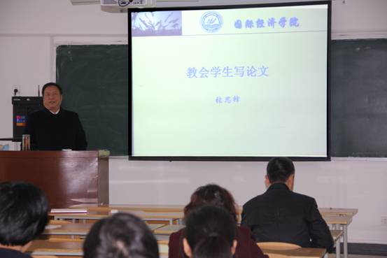 首先,张思锋副院长就如何指导学生写出好的论文这一主题,对与会指导教师做了相关培训。他说,本科论文写作的目的是通过对大学所学基本理论、基本知识和基本技能的运用,来发现问题,分析问题并解决问题。因此,论文切忌“大、空、泛”。他从选题依据、选题关键和研究范式等方面做了具体的分析,认为选题要具体,要从所学专业和未来就业的方向出发,发现与未来工作生活有关的现实问题,通过调查分析问题产生的原因,并提出解决问题的方法,落实论文的质量,符合人才培养目标,也为学生迈入社会做好准备。