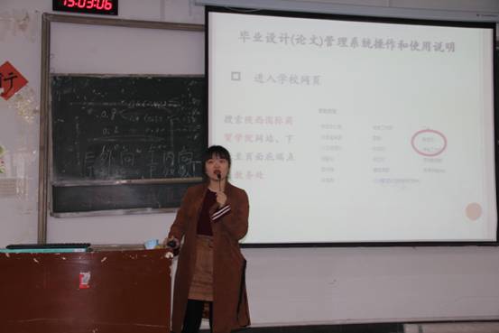 会议期间,学院办公室张瑞老师就学校毕业论文正方系统的使用以及如何完成毕业论文相关资料的阶段性文件的上传作了详细介绍和解读。