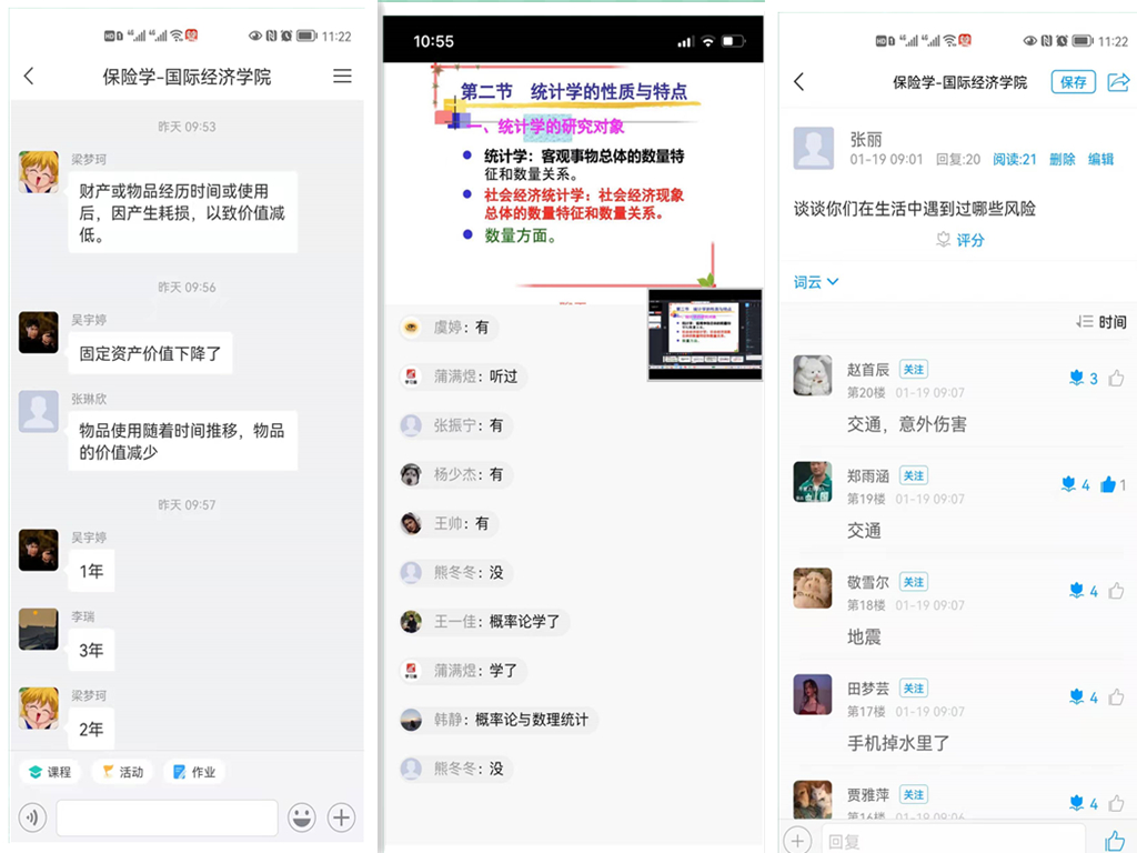 我院从12月21日起开始全面进行线上教学工作,学生们的课堂从教室搬到宿舍,师生互动从面对面交流变成云端隔屏对话。金融教研室全体教师坚守岗位,有序的开展毕业论文开题答辩、期末复习、组织考试、课题申报研讨、新学期授课等各项工作,积极联系各大书商及出版社,获取教材的电子版,确保教学进度不拖后、教学质量不降低。师生们通过学习通平台、超星直播平台、腾讯会议、手机微信群、QQ等多种渠道进行沟通交流,及时了解和帮助学生在学习生活中遇到的困难。