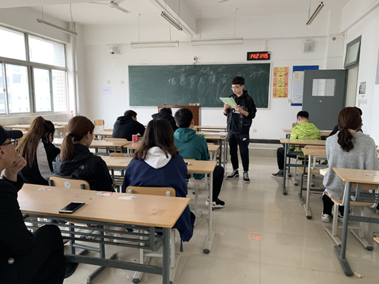 会议由2018级学生信息员李国皓宣读了学校《2018-2019学年第二学期三月份学生教学信息员意见反馈通报》及《国际经济学院关于下发3月份教学信息员反馈意见总结的通知》。随后由学院信息管理员张艳老师将学生教学信息员反映问题整改措施进行宣读。