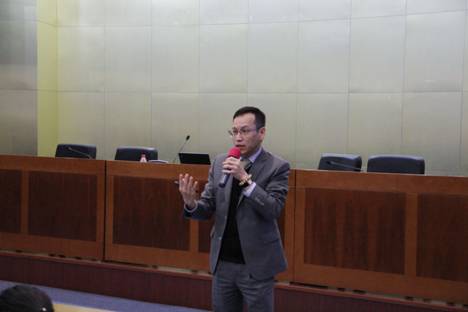 2016年3月21日下午,国际经济学院“企业大讲堂系列讲座2”报告会在学校南区学术报告厅举行,香港太子基金管理公司对冲基金经理蔡卓衡教授受邀作了主题为“金融业务经营活动中的策略选择”的学术报告。学院党总支副书记张孝峰、学工办主任荣超、全体辅导员以及国贸专业13级、14级全体学生参加了报告会。报告会由院长助理路敏主持。