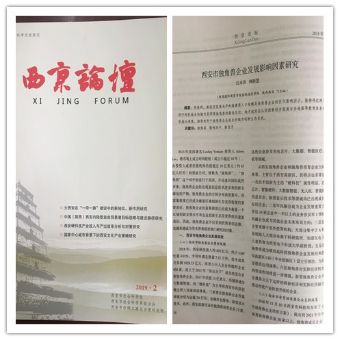 5月10日,江永洪老师收到西安市社科院、西安市丝绸之路经济带研究院寄来2019年第二期《西京论坛》杂志,其作品“西安市独角兽企业发展影响因素研究”在经济研究栏被收录。西安市社科院当日在其微信公众号“西安智库”进行了转载。