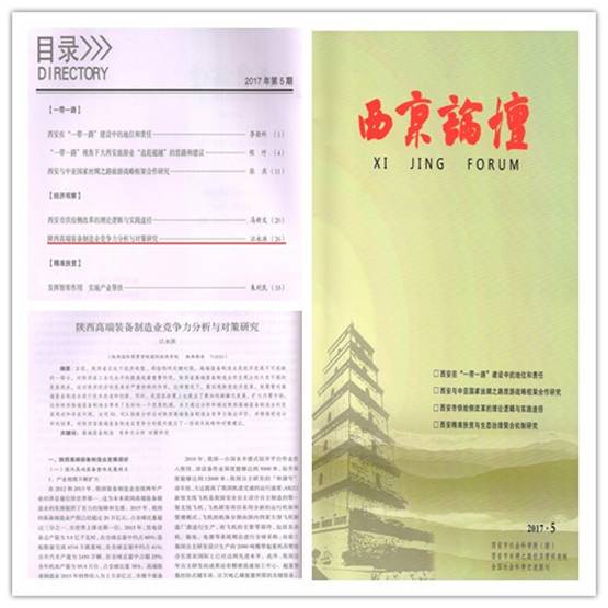 近三年来,我院江永洪教师积极参与省级及以上课题研究,该作品为2016年西安市社科规划基金立项课题部分成果,江永洪老师目前研究视角主要为战略新兴产业中高端装备制造部分,已经根据高端装备制造业五大细分领域做为系列研究,成果逐步涌现。