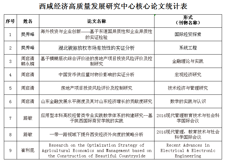 西咸经济高质量发展研究中心2018年核心论文统计表