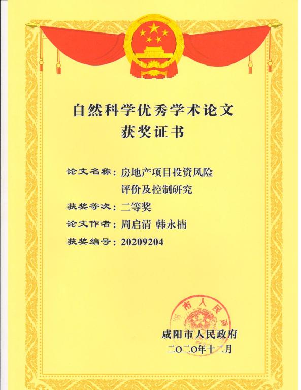 房地产项目投资风险评价及控制研究(咸阳市自然科学优秀学术论文二等奖)