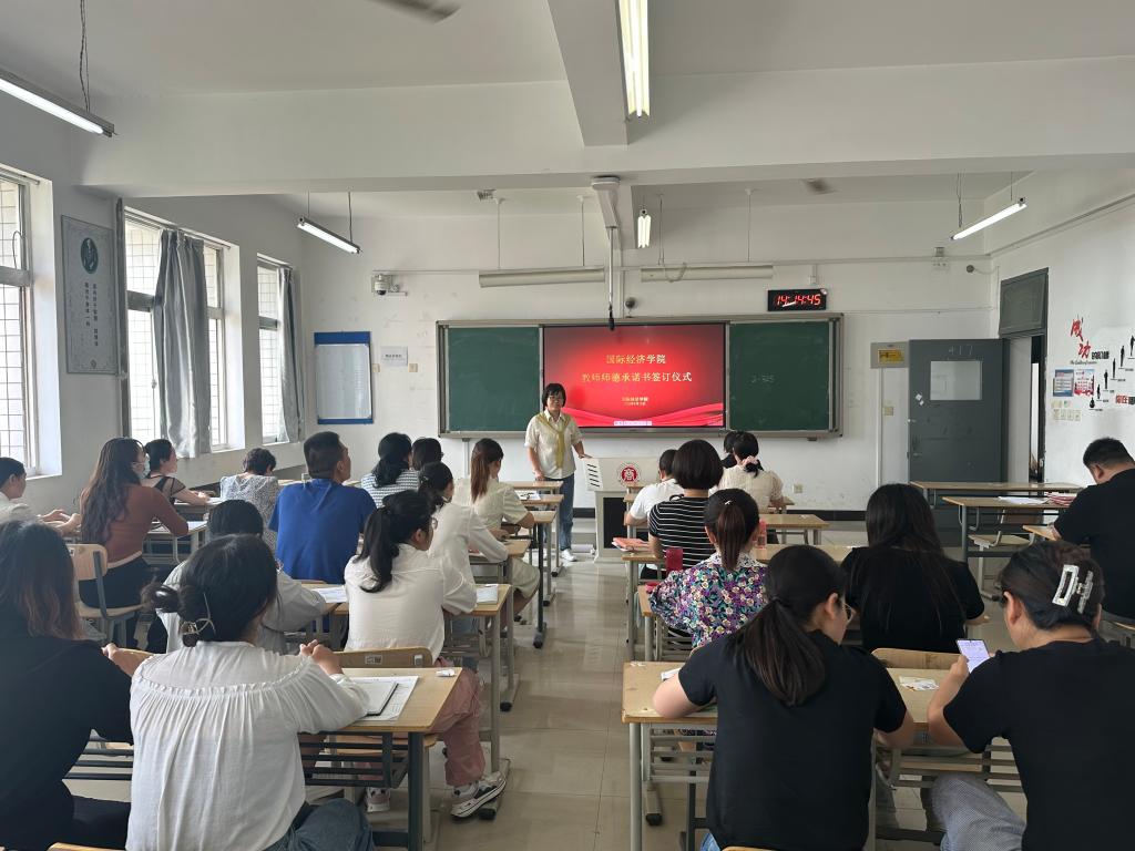 首先,全体教师签约国际经济学院教师师德师风承诺书。作为一名高校教师,将严格遵守《高等学校教师职业道德规范》、《新时代高校教师职业行为十项准则》,努力成为一名有理想信念、有道德情操、有扎实学识、有仁爱之心的人民教师。国际经济学院全体教师郑重承诺坚定政治方向、自觉爱国守法、传播优秀文化、潜心教书育人、关心爱护学生、坚持言行雅正、遵守学术规范、秉持公平诚信、积极奉献社会。