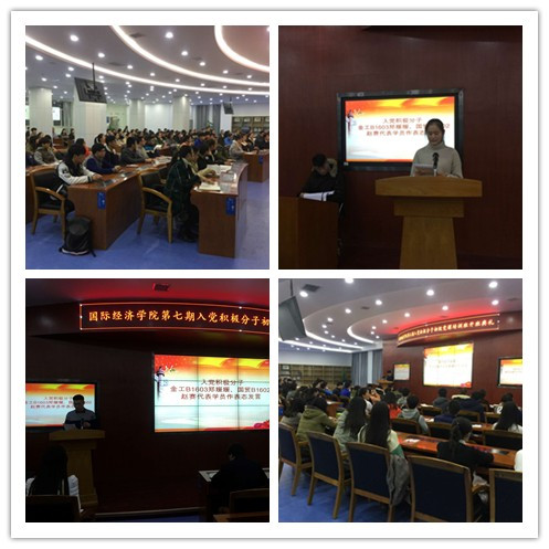 2016年12月2日晚19:00,国际经济学院党总支第七期入党积极分子初级班开班典礼在经管实验中心举行,学院党总支副书记张孝峰、辅导员李义玲、常伟、祝培刚以及120余名入党积极分子参加了典礼,开班典礼由学生第一党支部书记荣超主持。