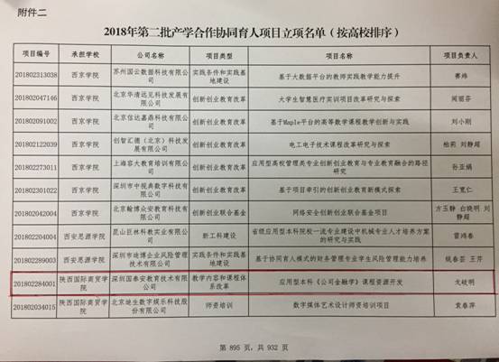 2019年3月,教育部发布了《教育部高等教育司关于公布有关企业支持的2018年第二批产学合作协同育人项目立项名单的函》(教高司函〔2019〕12号),国际经济学院教工党支部戈岐明博士的《应用型本科《公司金融学》课程资源开发》课题获批教育部2018年第二批产学合作协同育人项目立项: