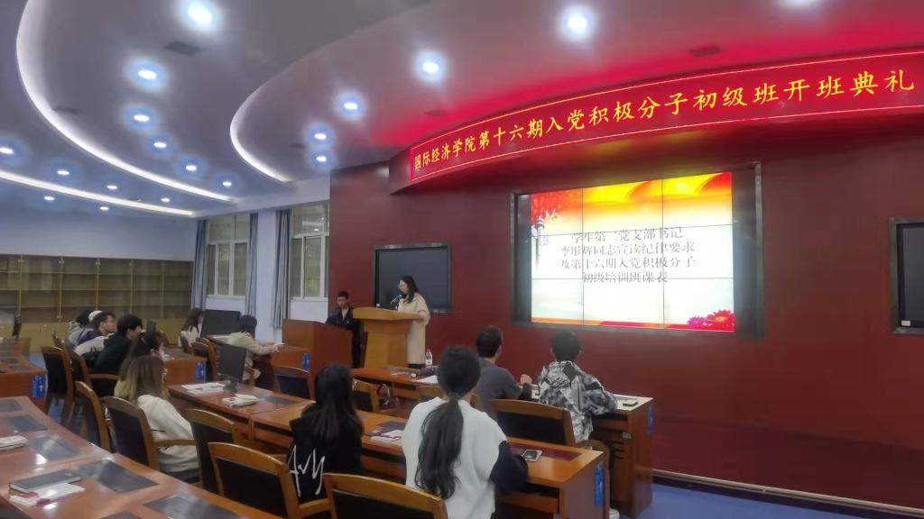 首先由学生第二支部书记李彤辉宣读国际经济学院第十六期党课纪律要求及党课课程安排,并对党课纪律和学习形式、结业考核等方面做了详细解读和要求。