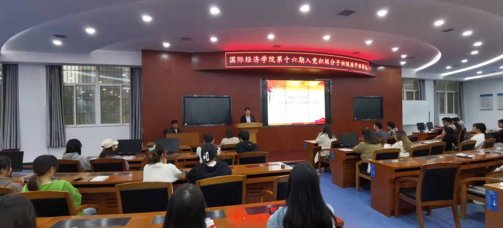 2021年10月9日下午14:30,国际经济学院党总支第十六期入党积极分子初级班开班典礼在经管实验中心举行,学院党总支副书记路敏,学生第二党支部书记李彤辉,支部组织委员常伟,宣传委员徐亚岚老师以及68名入党积极分子参加了典礼,典礼由学生第一党支部书记李义玲主持。