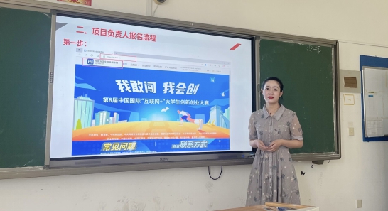 王蓉老师就报名过程中的一些注意事项进行了强调:一是填写信息时务必要真实有效,以免影响参赛资格;二是参赛项目要有创新性,不可抄袭市场上已有项目;三是在提交项目之前,需要注意相关文字、图片等格式,作品格式应该清晰、准确,以便更好展示参赛团队的创新创业项目。王蓉老师组织同学们进行了现场网络报名,对学生报名过程中遇到的问题答疑解惑。
