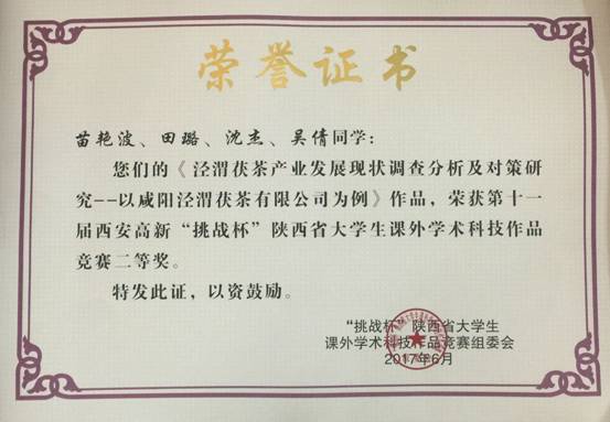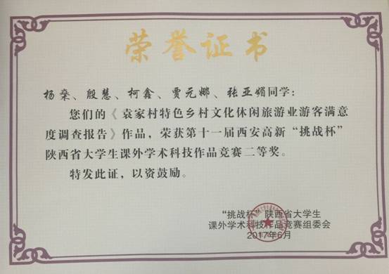 2017年6月12日,由团省委、省教育厅、省科技厅、省学联、西安高新区管委会、省科学院、省社科院共同主办的第十一届西安高新“挑战杯”陕西省大学生课外学术科技作品竞赛终审决赛揭晓,国际经济学院推选的参赛作品分获竞赛二等奖3项、三等奖2项,获奖等级和数量在创历史新高。