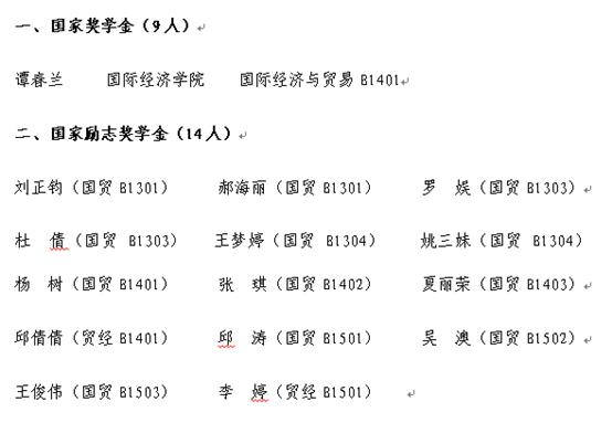 国际经济学院2015-2016学年国家奖学金,国家励志奖学金获奖学生名单公示