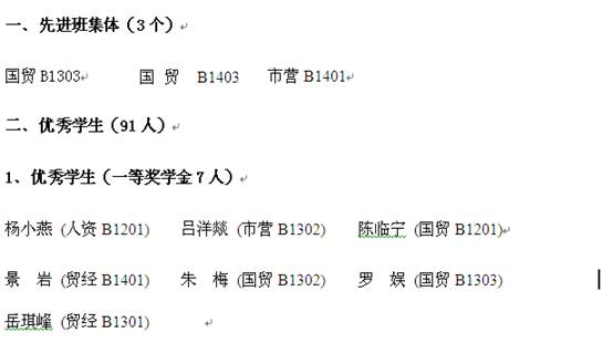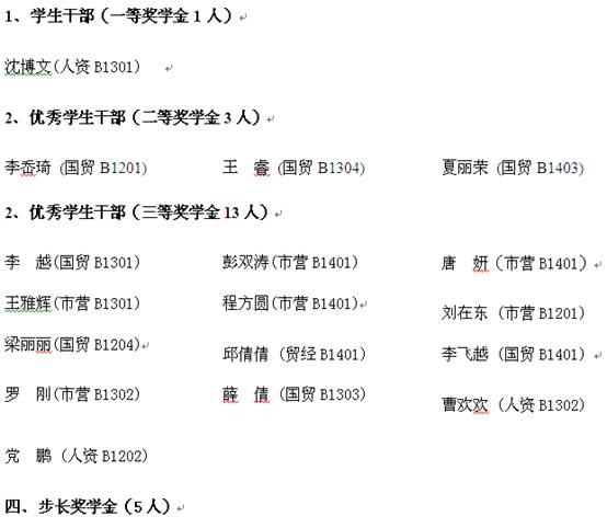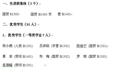 国际经济学院2014—2015学年先进集体、优秀学生、优秀学生干部、步长奖学金获得名单