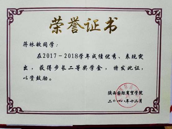 ——2017—2018学年“步长奖学金二等奖”获得者 我院国际经济与贸易专业B1603班 蒋林敏